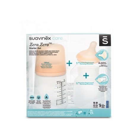 Suavinex Pack Biberón ANticólicos ZeroZero 180ml Tetina + Bolsa