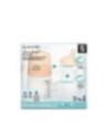 Este set está diseñado para combinarse con la lactancia materna, imitando de manera física y fisiológica el pecho materno. La tetina de flujo adaptable permite ajustar el flujo de leche según la succión del bebé, mientras que la bolsa anticólicos integrada ayuda a reducir los cólicos y la ingesta de aire, al eliminar las burbujas de aire en el biberón.
