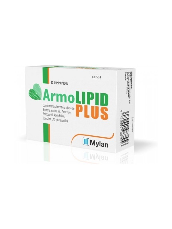 ArmoLIPID PLUS es un complemento alimenticio que contiene Berberis aristata e. S., Arroz rojo fermentado (con una cepa concreta de Monascus purpureus), Policosanol, Ácido fólico, Coenzima Q10 y Astaxantina. El extracto seco obtenido de la corteza de Berberis aristata , favorece el control de los triglicéridos, y ayuda a controlar los niveles de colesterol plasmático, acompañado de una alimentación adecuada para este fin.