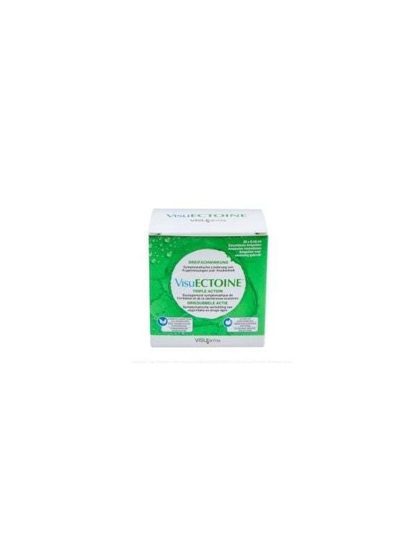 Visuectoine es una solución oftálmica estéril humectante y lubricante a base de ectoína, hialuronato de sodio y carboximetilcelulosa sódica. Visuectoine no contiene conservantes ni fosfatos y puede ser utilizado con lentes de contacto. Se presenta en ampollas monodosis de polietileno de baja densidad que contienen 0,4 ml de producto. Cada caja contiene 30 ampollas monodosis.