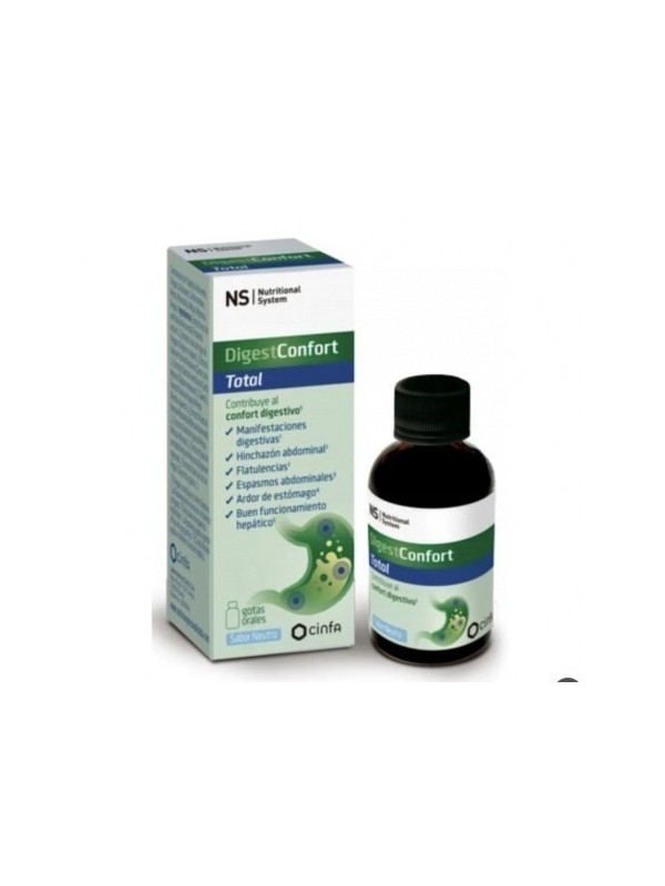 Descripción: NS DigestConfort Total Gotas 20 ml Sabor Neutro es un compuesto concentrado de extractos vegetales seleccionados para mejorar los síntomas digestivos como hinchazón abdominal, flatulencias, ardor de estómago y digestiones pesadas. Además, contribuye al buen funcionamiento hepático.