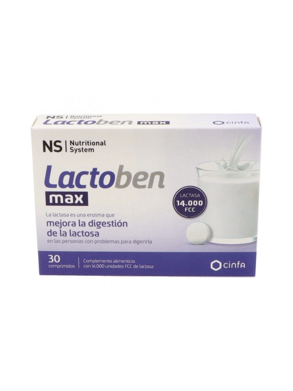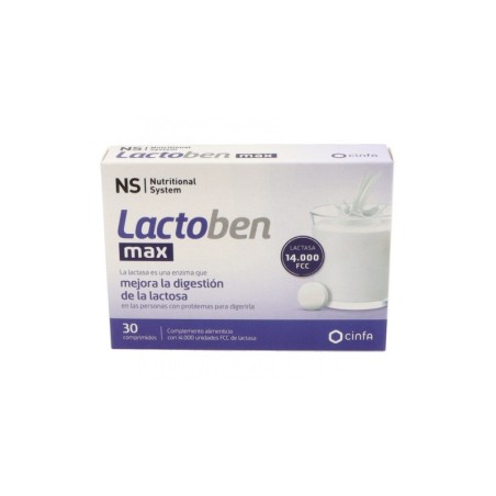 Descripción: Lactoben Max es un complemento alimenticio que contiene lactasa, una enzima que mejora la digestión de la lactosa, ideal para personas con intolerancia a la lactosa. Su fórmula con 14,000 unidades FCC de lactasa ayuda a descomponer la lactosa en glucosa y galactosa, facilitando la digestión de los productos lácteos.