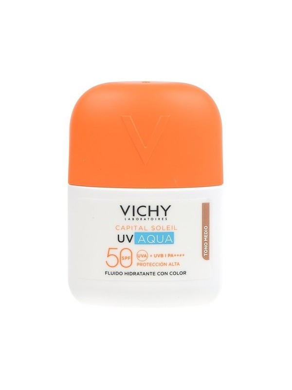 Vichy capital soleil uv aqua fluido hidratante spf 50 es un protector solar facial con una textura ligera y fluida que proporciona alta protección contra los rayos uva y uvb. Está formulado con ingredientes hidratantes para mantener la piel suave y protegida durante todo el día. Además, su color tono medio ayuda a igualar el tono de la piel y proporcionar un acabado natural.