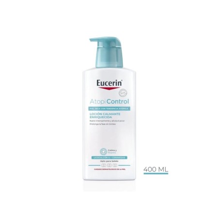 Atopicontrol loción calmante enriquecida es un producto de cuidado básico diario sin perfume. Para piel seca y atópica con efectos duraderos calmantes y regeneradores de la barrera cutánea que prolonga el período entre brotes. La piel atópica es seca, irritable y produce picores. Estos picores llevan a rascarse, lo que inicia el ciclo de picor-rascado. Los síntomas empeoran y pueden impedir dormir bien, así como tener efectos negativos en la calidad de vida. Eucerin atopicontrol loción calmante enriquecida es una loción de uso diario para piel atópica como cuidado complentario, que se ha formulado especialmente para calmar e hidratar intensamente la piel irritada y el picor. La loción de agua en aceite se absorbe con rapidez y está enriquecida con licocalcón a, ceramidas y aceites omega para fortalecer la barrera cutánea, aliviar la sequedad y el picor y ayudar a prolongar el período entre brotes de dermatitis atópica. Su aplicación habitual mejora visiblemente la piel, que se nota suave y tersa. Eucerin atopicontrol loción calmante enriquecida no tiene perfume, puede usarse también con eucerin atopicontrol crema forte durante un brote, y se ha demostrado que favorece el sueño y mejora la calidad de vida de quienes sufren piel atópica. Apta para adultos, niños y bebés a partir de las cuatro semanas.