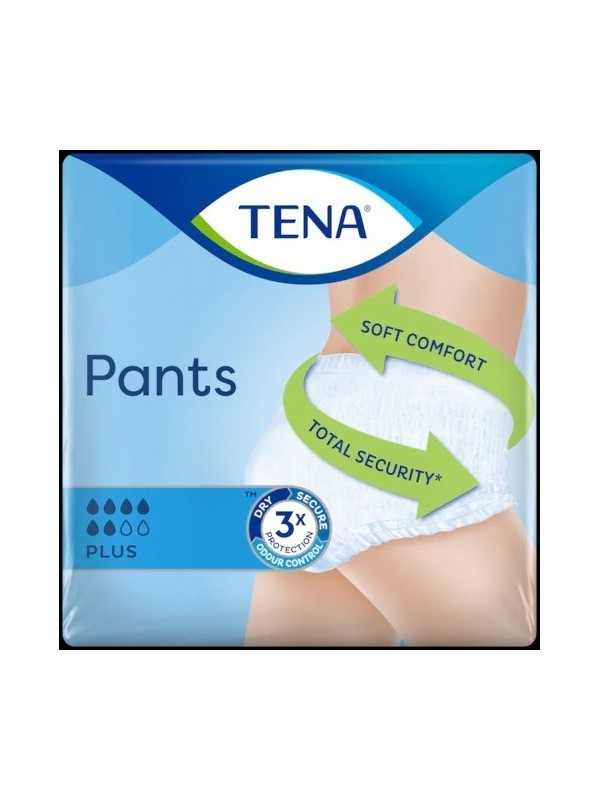 TENA Pants Plus es una ropa interior absorbente cómoda y desechable de color blanco para hombres y mujeres que sufren incontinencia que se adapta al cuerpo como la ropa interior normal. Está fabricada con materiales transpirables de tacto textil que se adaptan al contorno del cuerpo para ofrecer máxima comodidad. A diferencia de los pañales para adulto estándar, TENA Pants Plus tiene un núcleo de gran absorción que atrapa rápidamente el líquido de manera eficaz y ofrece protección total. Su delgado núcleo flexible forma dos canales de absorción, lo que se denomina Doble Zona de Absorción, que aleja la humedad del cuerpo de forma eficaz y ofrece una mayor sensación de sequedad y protección. Barreras antiescapes integradas para mayor seguridad. Protección de confianza frente a las pérdidas que permite llevar un estilo de vida activo y sentirse seguro en cualquier situación.