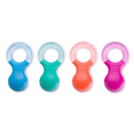 El mordedor refrigerante está indicado para los dientes premolares y bebés a partir de 4 meses, enfriando el agua destilada de su interior alivia las encías inflamadas, además de fortalecer los dientes gracias a sus relieves.