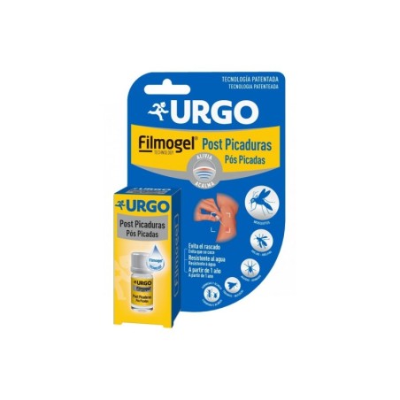 Urgo post picaduras filmogel® es un film transparente indicado en caso de 7 picaduras de insectos: picaduras de mosquitos, avispas, abejas, tábanos, arañas, hormigas y ácaros. Resistente al agua y apto para niños a partir de 1 año.