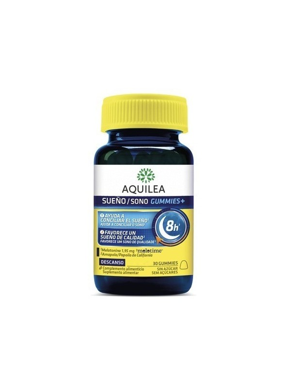 Tu mejor alidado será Aquilea Sueño Gummies+ con un innovador formato gummy, sin azúcar, que contiene una combinación única de 1,95mg de melatonina + melotime™ para ayudar a un descanso de hasta 8 horas.